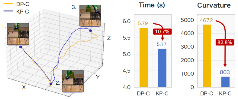 针对这一问题,团队首次将新型的KANs引入机器人策略学习,开发出能够在生成过程中保持内在连续性的新模型——KAN Policy (KP),使其具备了学习并生成高效、平滑轨迹的能力。