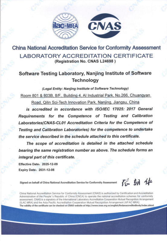 此次取得CNAS认可,标志着研究院软件测评实验室在管理规范性与检测可靠性上已达到国家权威标准,亦彰显了研究院在软件检测技术创新与质量管理方面的深厚积淀与整体实力。展望未来,实验室将进一步强化能力建设,深耕前沿软件理论探索与关键技术攻关,依托“源图”持续提供专业、公正、高效的软件测评及相关技术服务,为我国软件产业的高质量发展贡献力量。